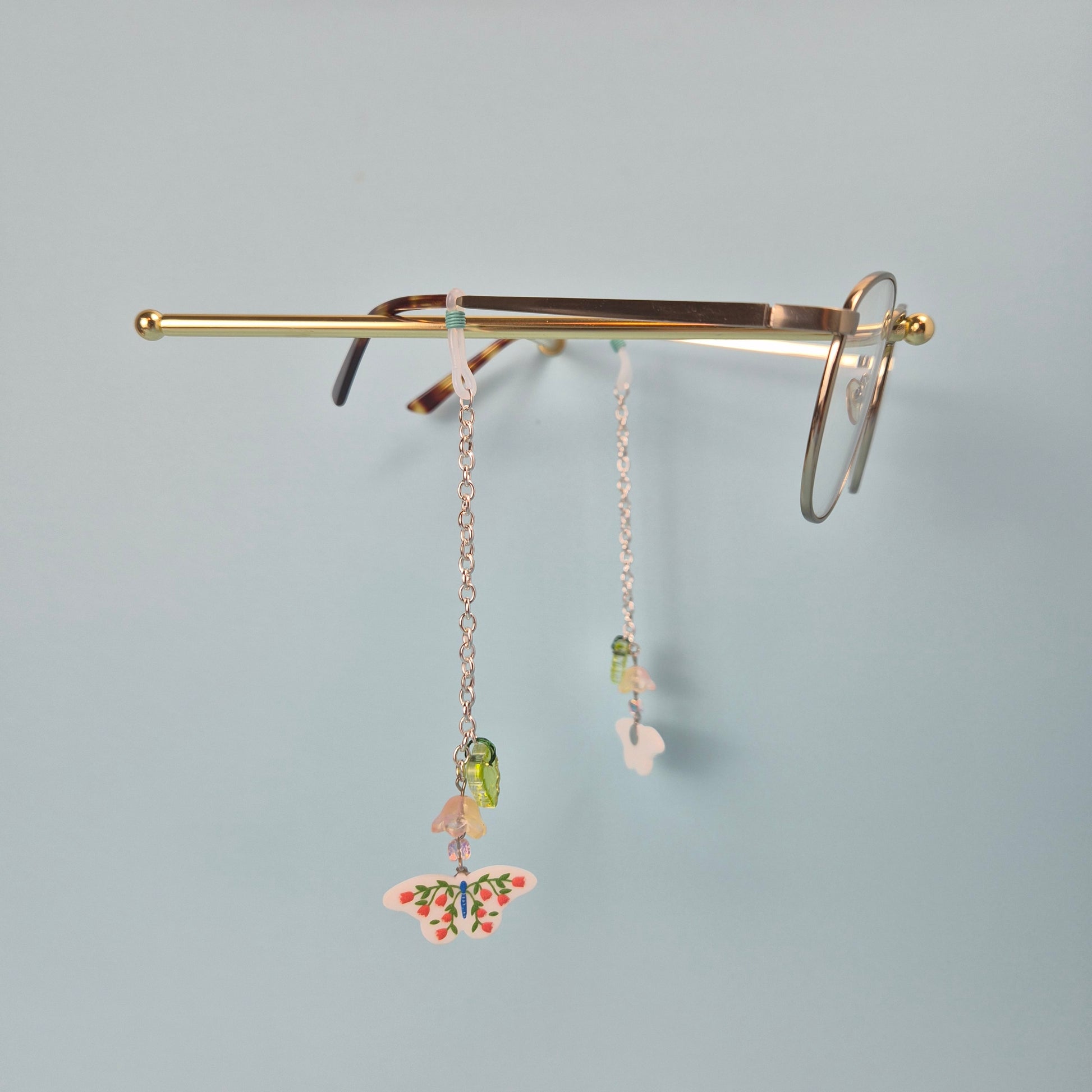 Step into a world of whimsy with our Butterfly Garden themed glasses chains, a delicate blend of nature and style. Adorned with dainty butterflies, pastel blooms, and shimmering beads, this chain feels like a stroll through a sunlit meadow.