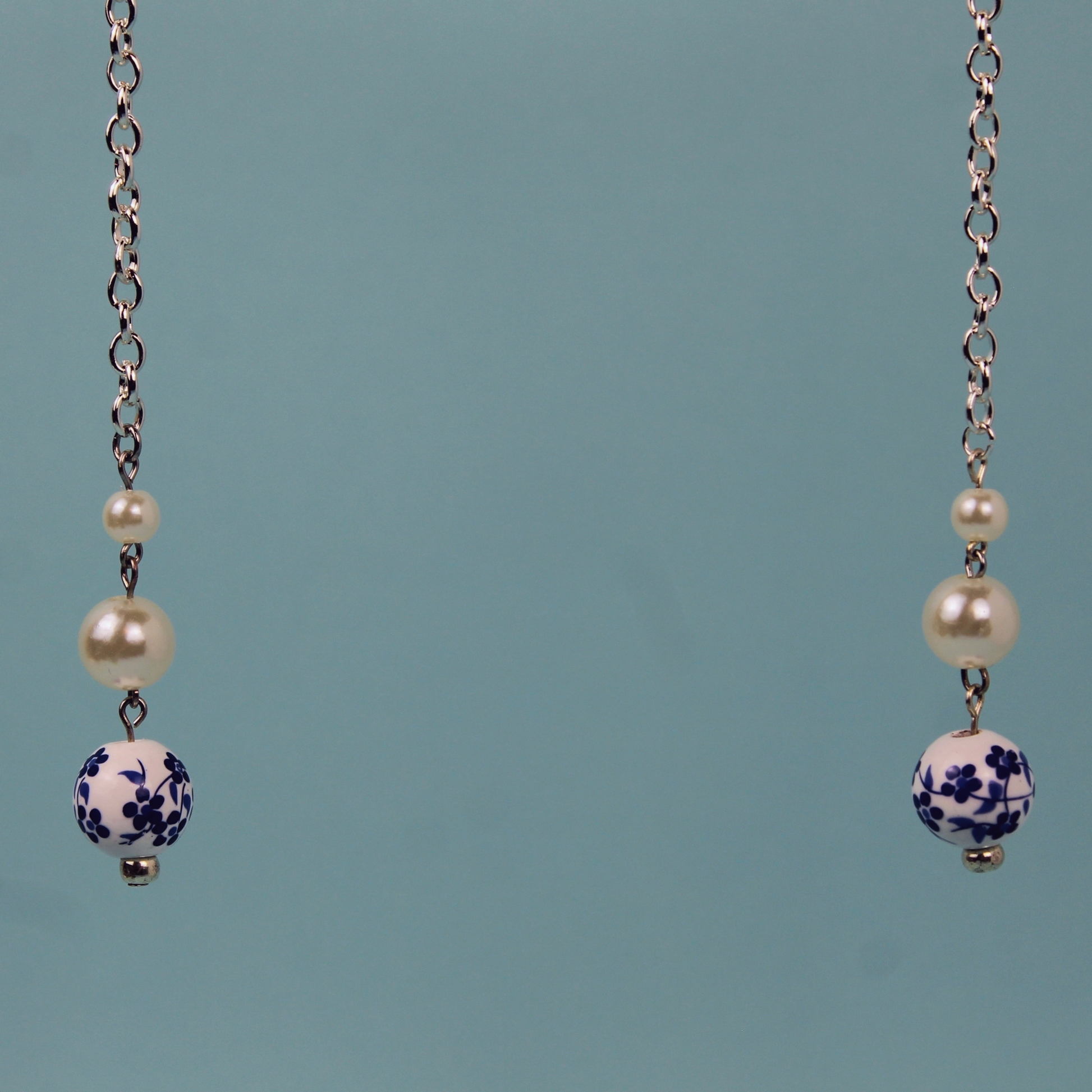 Refined and romantic, the Porcelain Pearl Glasses Chains bring a timeless touch to your everyday look. Featuring blue-and-white porcelain beads paired with lustrous faux pearls, these chains capture the elegance of vintage tea sets and classic jewelry design. The silver-tone chain and soft heart connectors complete the sophisticated look, making them as graceful as they are functional.